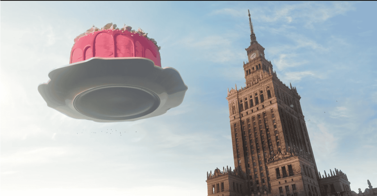 Synopsis: A strange object appears above Warsaw city in the morning. Guys are waking up their UFO enthusiast roommate to check what is going on, alongside with funky music and a retro flying car.