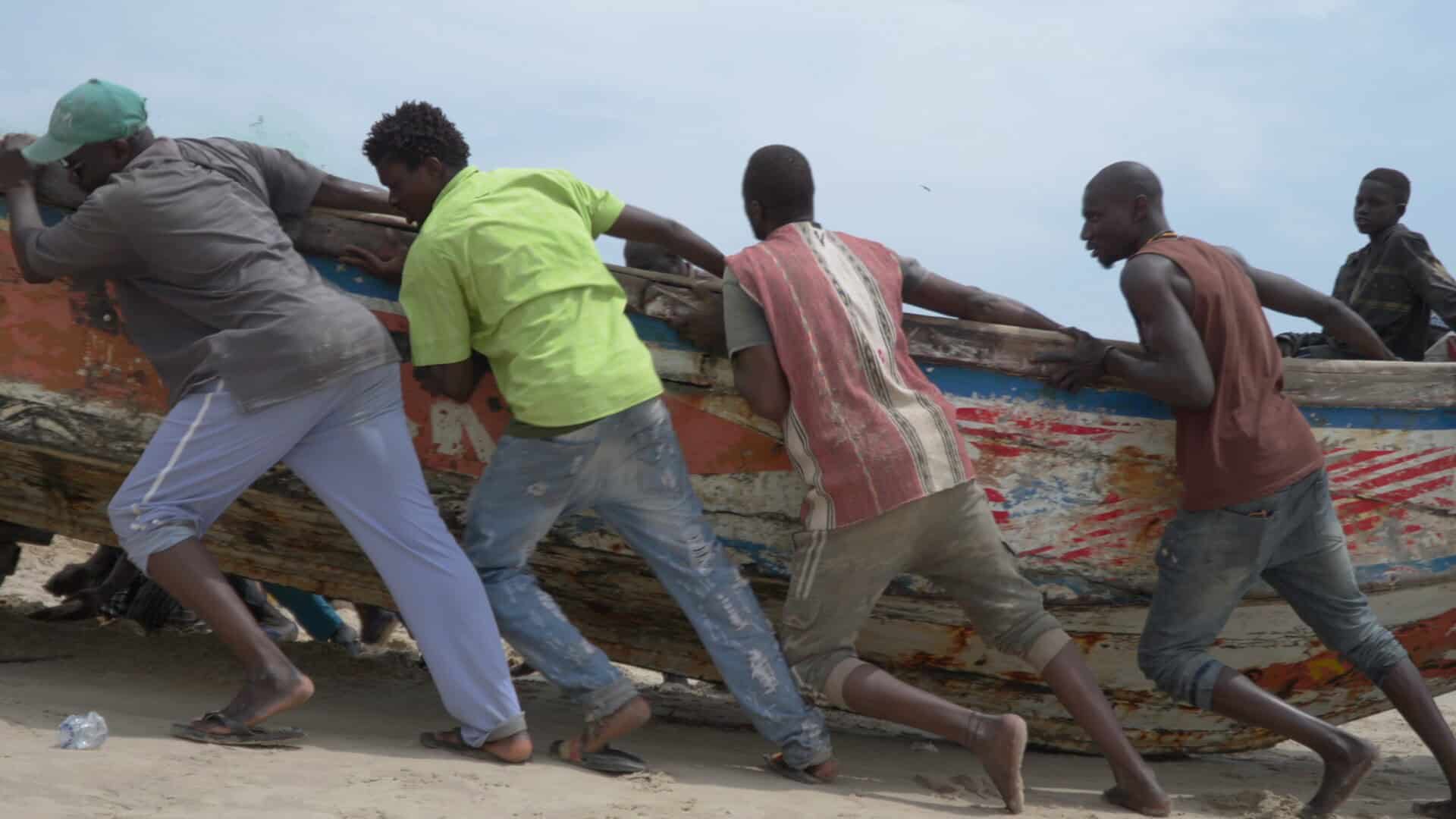 Synopsis: On a beach in southern Senegal, a group of fishermen lives together in a hut by the shore. Not owning their own pirogue, they are usually hired by the day.During a long period of bad weather, they can’t find work at sea. So, they have to get by doing small jobs on the shore, and above all find ways to kill time.