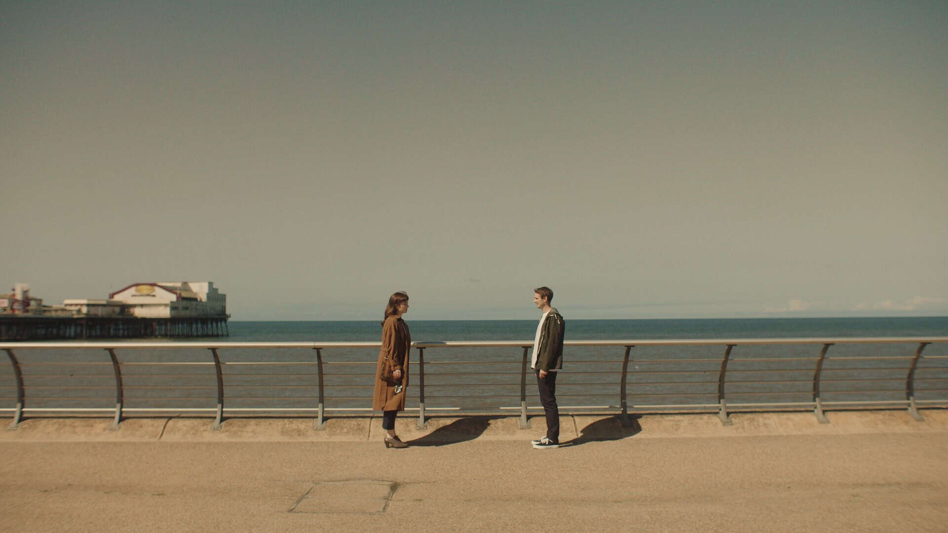 Brighton seafront with two people conversing near the pier, symbolising connection and community in networking events.